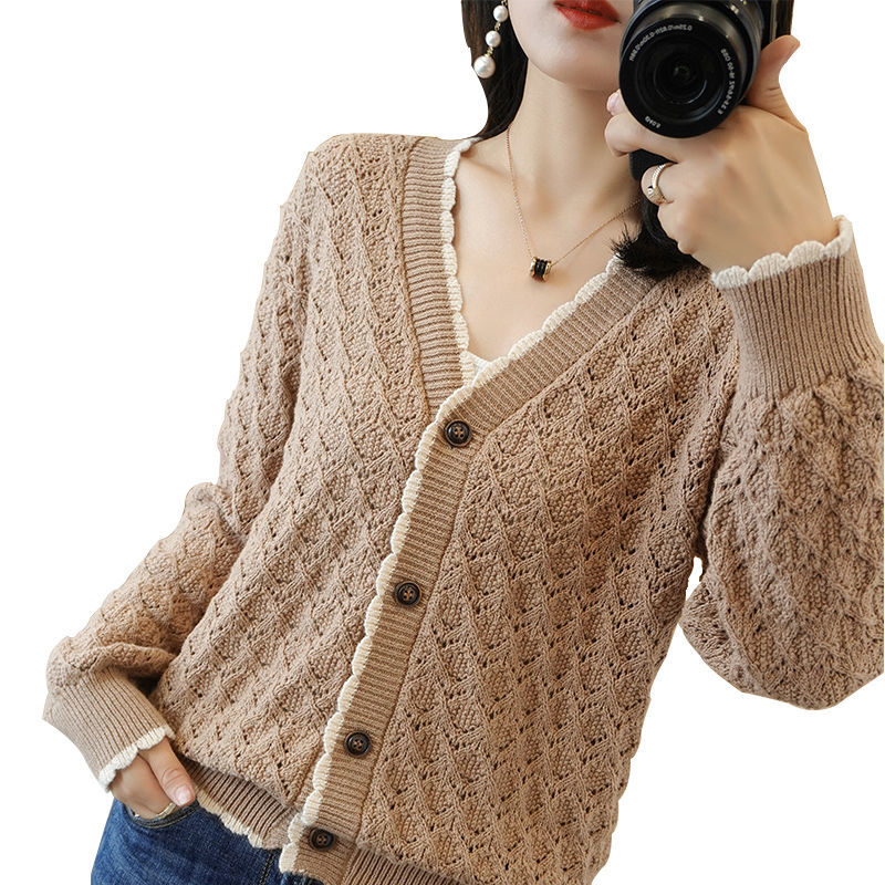 Holoow out lace plus size Knitted cardigan Women slim long sleeve sweater Vintage Knitting tops Spring Sunscreen Shirt