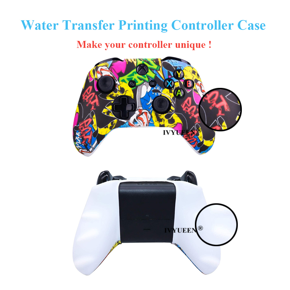 IVYUEEN Silicone Protective Skin Case for XBox One X S Controller Protector Water Transfer Printing Camouflage Cover Grips Caps