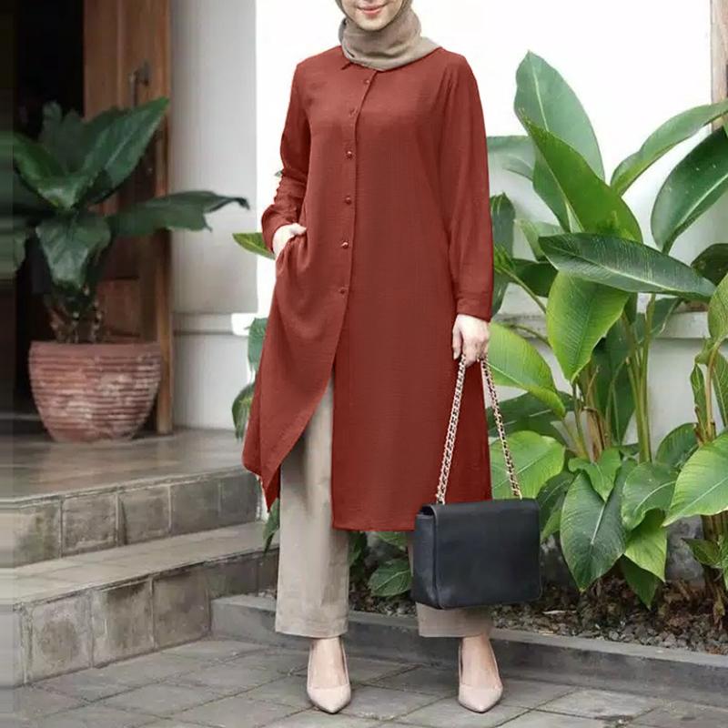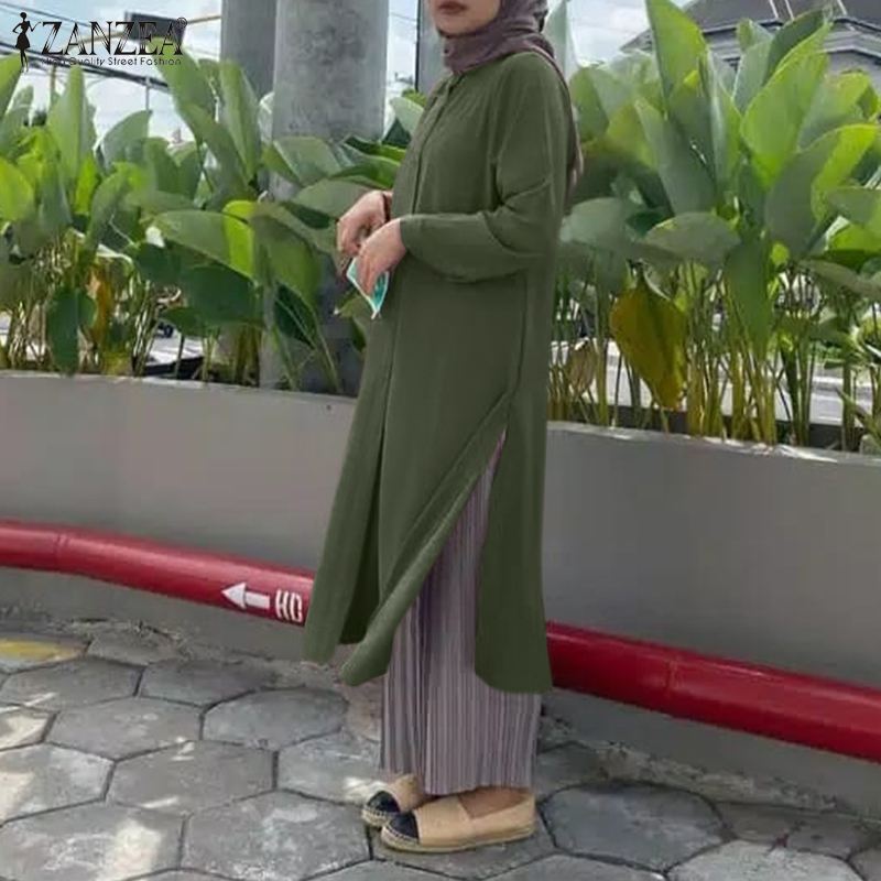 Islamic Clothing Buttons Down Solid Long Blouse ZANZEA Women Full Sleeved Muslim Blouse Tops Kaftan Casual Solid Blusas