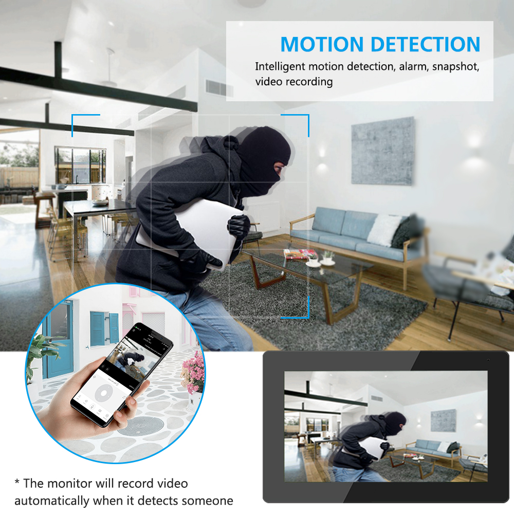 Every times the video intercom detect an action,it will snapshot or record video automatically.You will receive a notification from Tuya at same time.So that you can remote monitor what he do or talk with him.