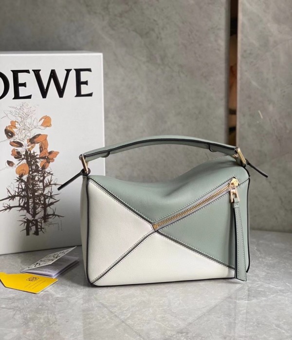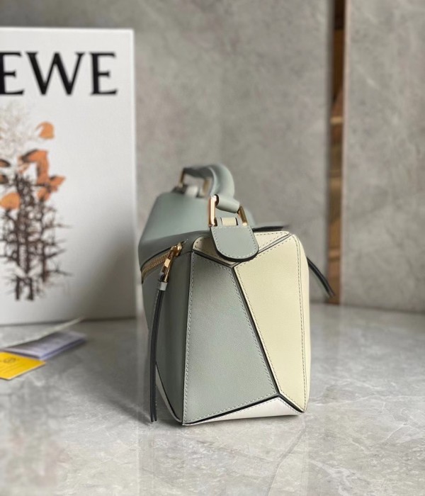 Loewe Puzzle Small Bag In Grey/Cream/White Calfskin
