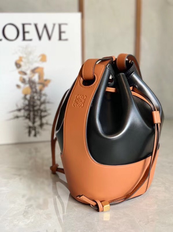 Loewe Small Balloon Bucket Bag In Black/Tan Calfskin