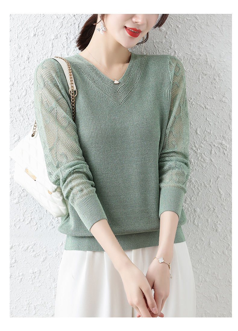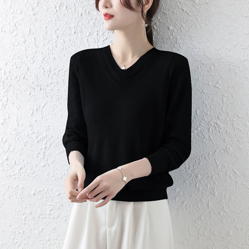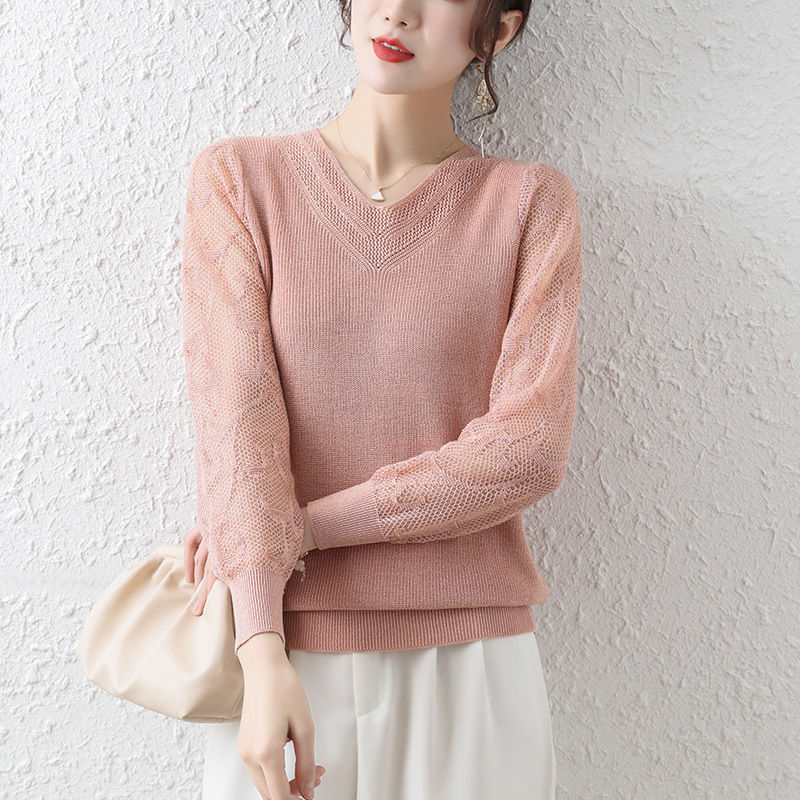 Loose Bottoming Shirt Women's Long-sleeved T-shirt Spring and Autumn Thin Hollowed-out Western-style Knitted Top
