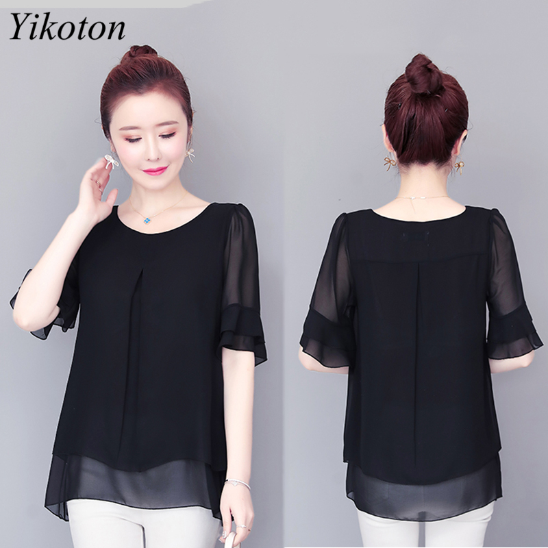 Loose Chiffon Blouses and Shirts Top Woman Casual Summer Ladies Office Work Shirt Petal Sleeve Elegant Blouse Mujeres Blusas