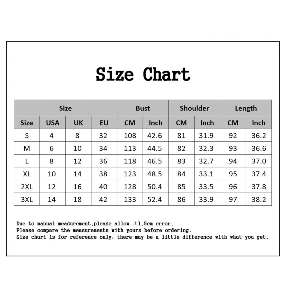 [Our Size 3XL] Bust: 133cm/52.4", Length: 97cm/38.2", Shoulder: 86cm/33.9" (Approx.)