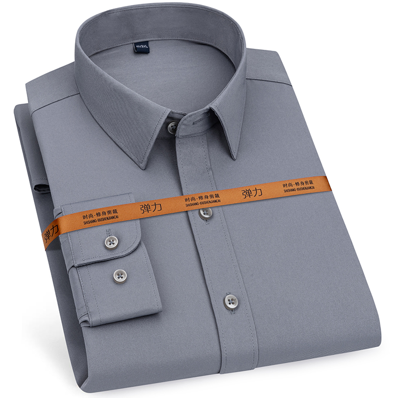 Men's Long Sleeve Solid Stretch Easy Care Shirt Formal Business Office/Working Wear Standard-fit Solid Social Dress Shirts
