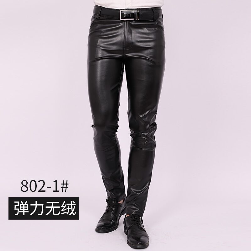 Men's Slim Fit Skinny Pants Tight Stretch Leather Pants Teen Trend Motorcycle PU Leather Pants