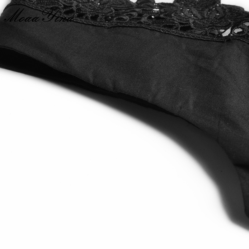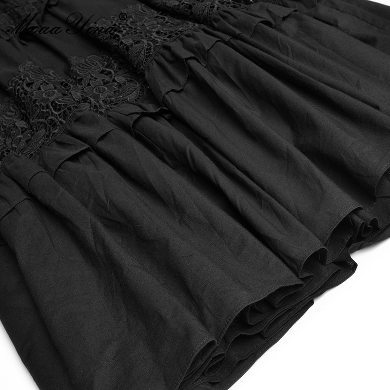 MoaaYina Runway Summer Black Party Dresses Women's Holiday V-neck Sleeveless High waist Hollow out Lace Long Dress