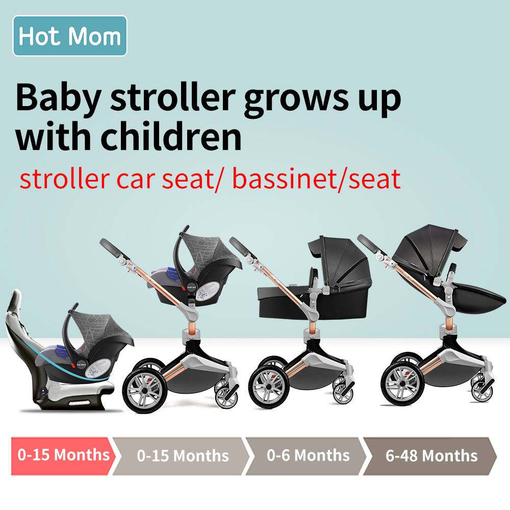 Mom Baby Stroller 3 in 1 travel system with bassinet and car seat,360° Rotation Function children stroller, Pram F023