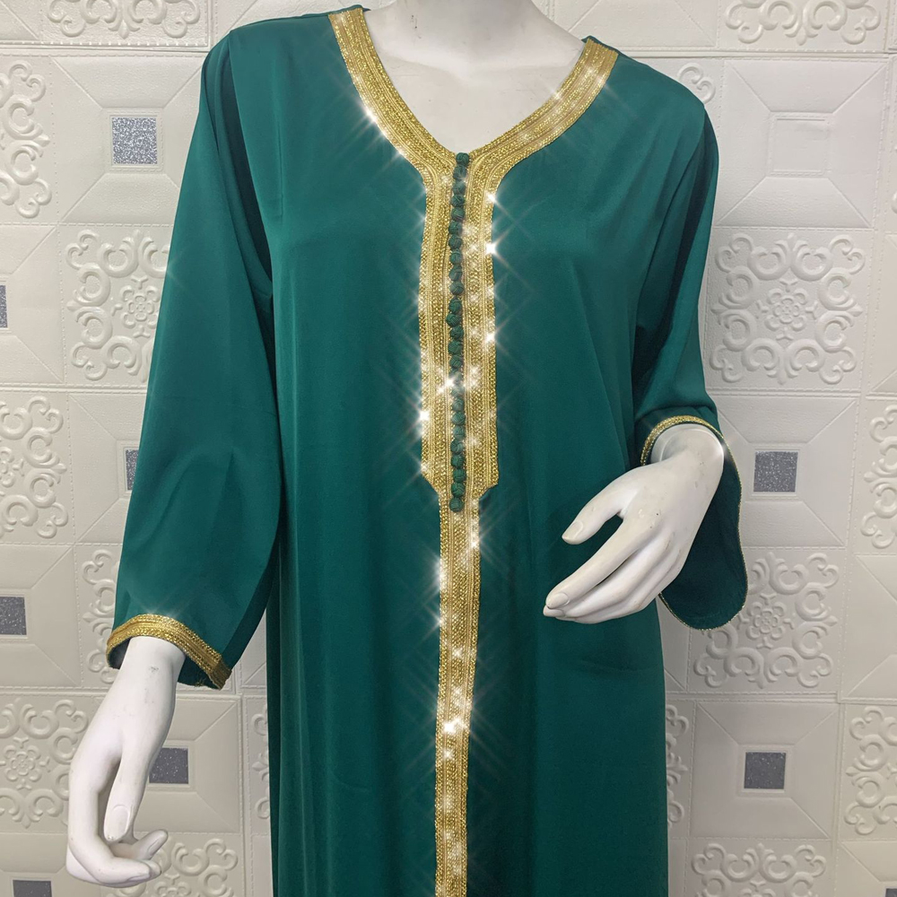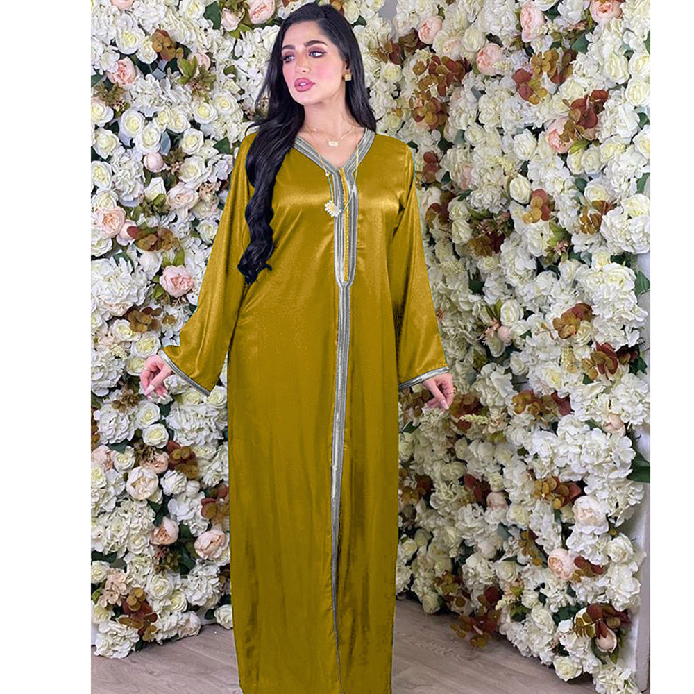 Muslim Women Long Skirt Dubai Turkey Abaya Arab Prayer Costume Islamic Dress Robe Evening Party Green Yellow Kaftan