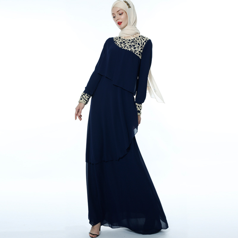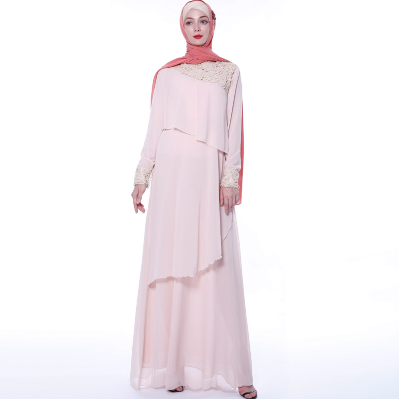 Muslimah Jubah Abaya Long Sleeve Dress Abaya Dubai Chiffon Dress  Kaftan Vira Lace Stitching Elegant Dress European Clothing