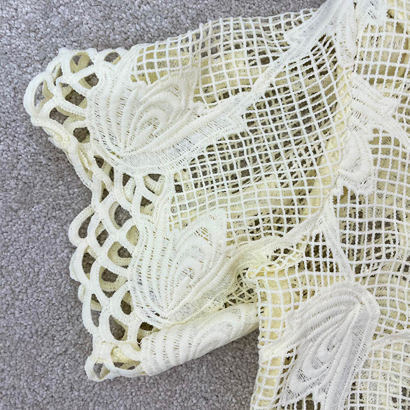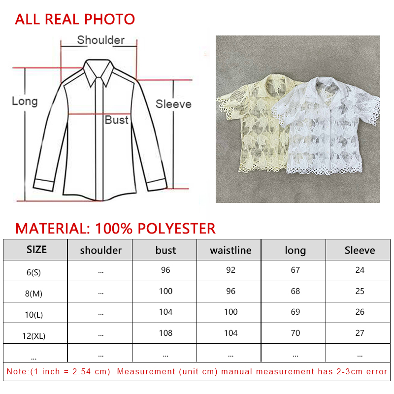 OROT@ Summer 2 Colors Polyester Hollow Lace Short Sleeve Lapel Daily Casual Cardigan Blouse