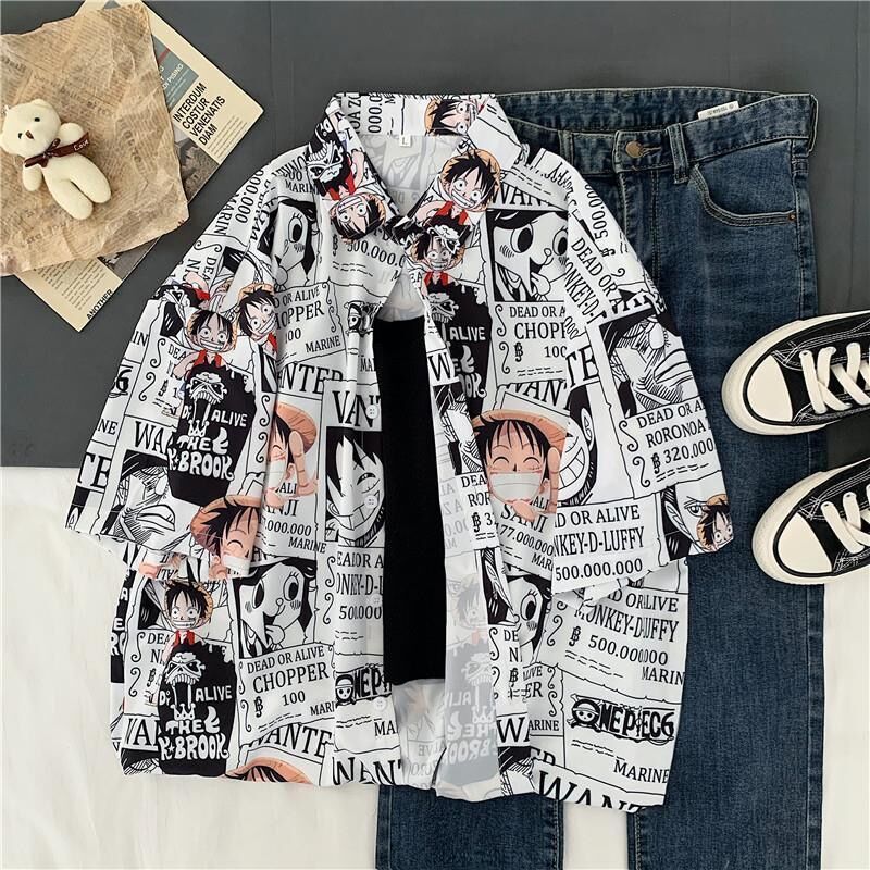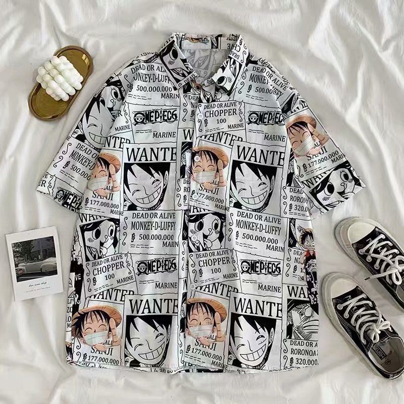 One Piece Anime Print Shirt Button Up Blouse Clothing for Men Women Japanese Harajuku Clothes Casual Girl Tee Tshirt Tops