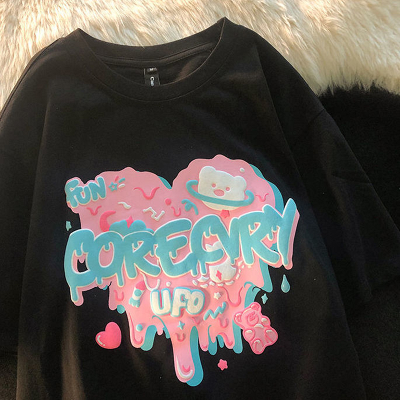 Oversized T Shirt Funny Cute Bear Print Women's T-shirt Harajuku Summer Streetwear Short Sleeve Tops Female Tee Shirt Hip Hop