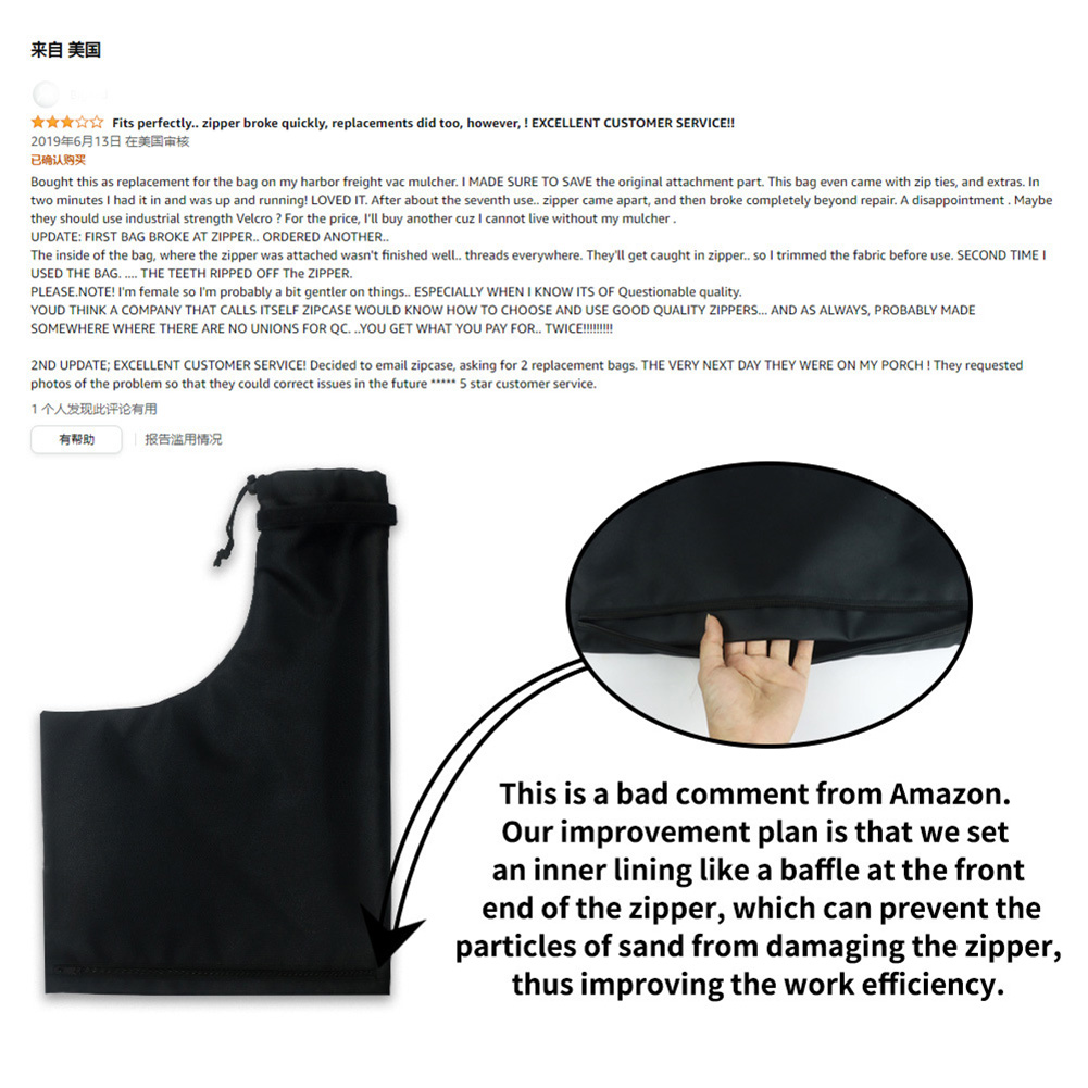 4. Bottom zipper design, easy to take out without dumping leaves, easy to clean. Simply slide the bottom zipper to easily empty leaves or clear dust.