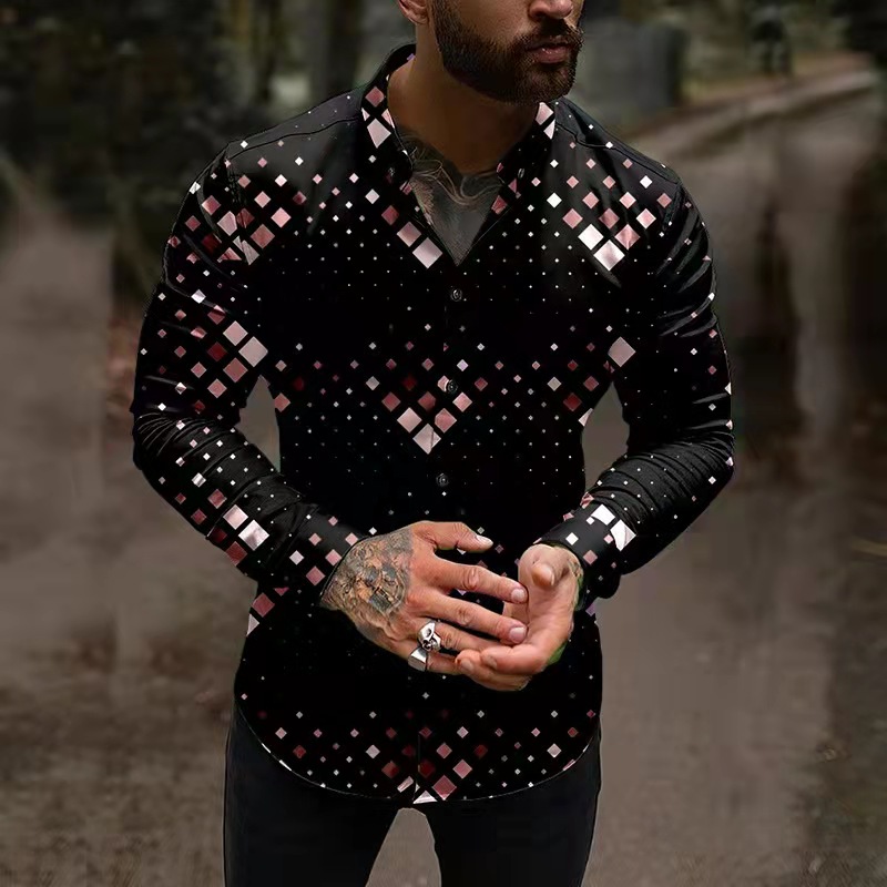 Pink 3d Print Shirts for Men Shirts Single Breasted Shirt Casual Long Sleeve Tops Men's Clothing Cardigan