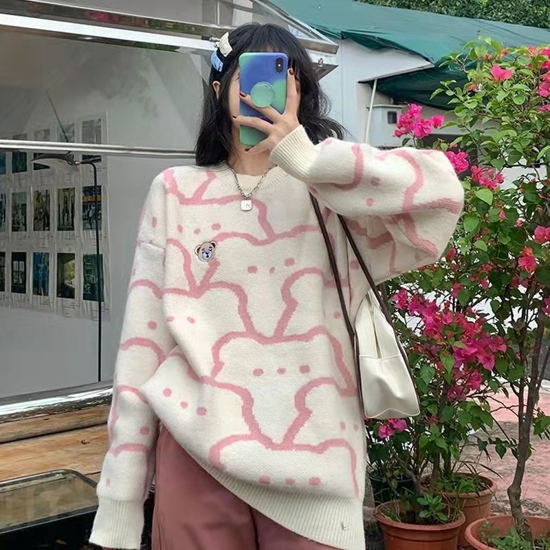 Pullover Femamle Winter Autumn Oversized Knitted Sweater Women Long Sleeve Embroidery Cartoon Thicken Pullovers Jumper Tops