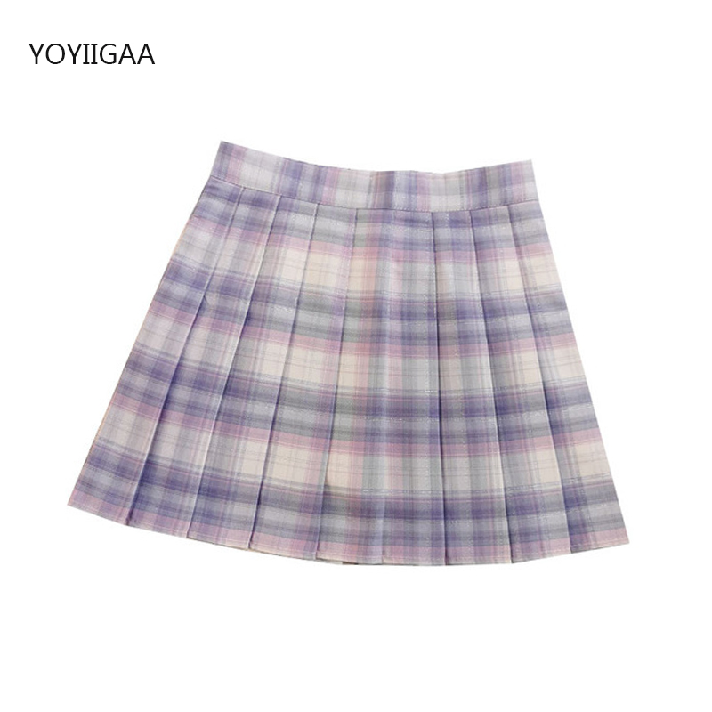 Purple Women Pleated Skirts High Waist Woman Plaid Mini Skirt Preppy Style Casual Female Skirts Sweet A-line Ladies Short Skirt