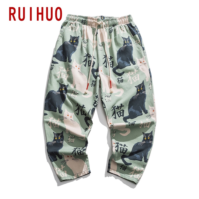 RUIHUO 2022 New Cat Print Harem Pants Men Trousers Casual Baggy Pants Men Ankle-Length Sweatpants Hip Hop Streetwear M-5XL