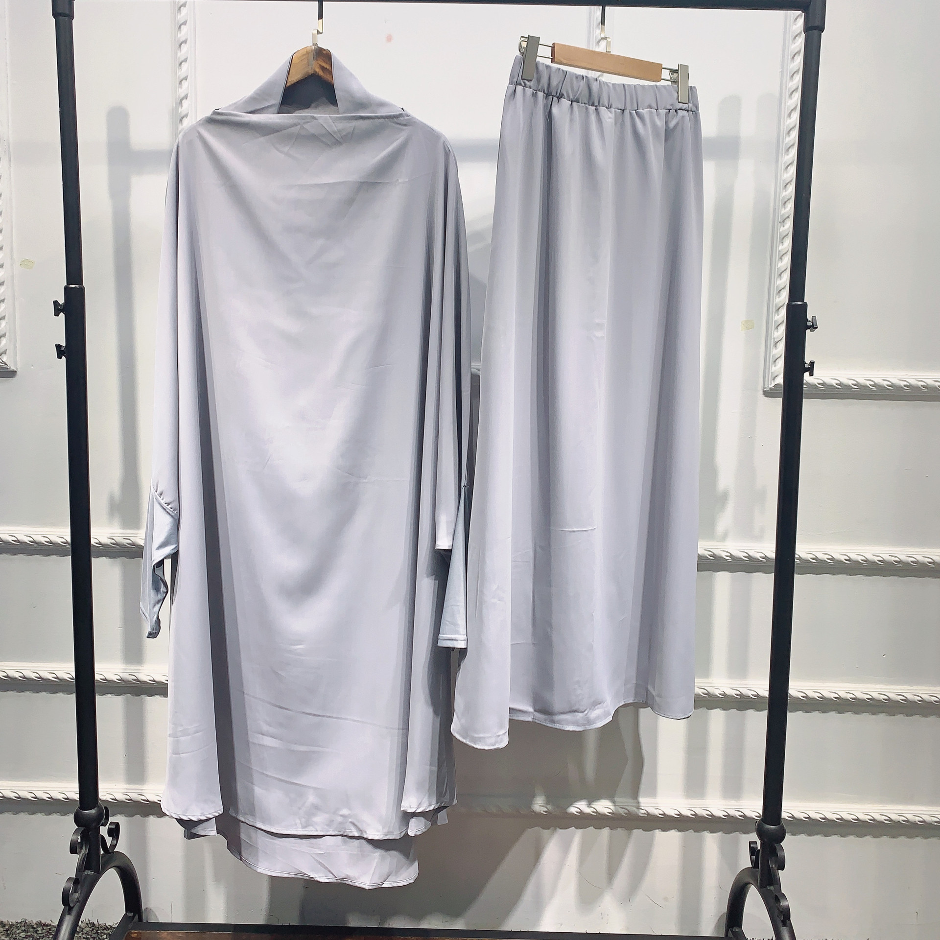 Ramadan 2 Piece Muslim Prayer Garment Sets Women Hijab Abaya Jilbab Maxi Dress Khimar Burqa Islamic Clothing Overhead Arab Robe
