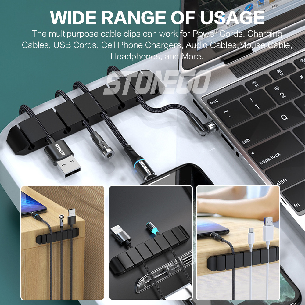 STONEGO Cable Organizer Silicone USB Cable Winder Desktop Tidy Management Clips Cable Holder for Mouse Headphone