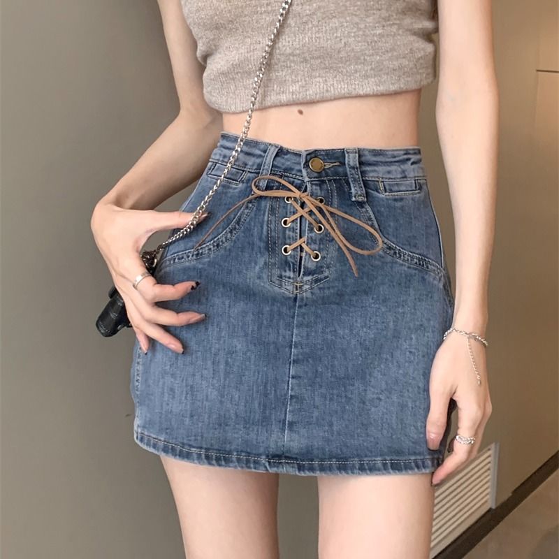 STSVZORR spring and summer large size slim bag hip denim shorts skirt design sense strapping skirt lining