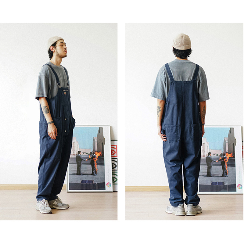 Safari Style! Multi-pocket Overalls Men's Baggy Bib Trousers Work Cargo Pants Men's Street Style Casual Overall Men