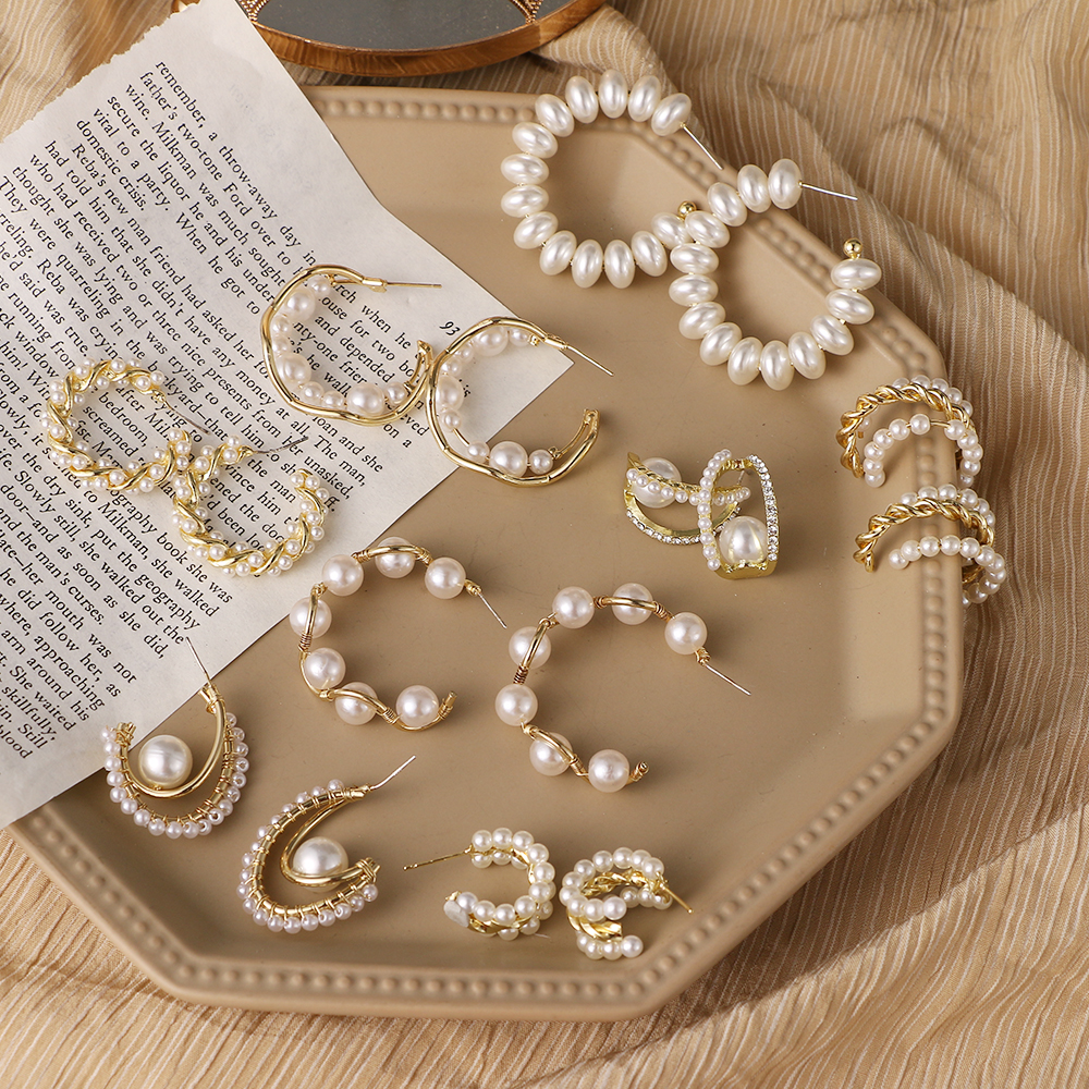 Simple Plain Gold Color Metal Pearl Hoop Earrings Big Circle Hoops Statement Earrings for Women Wedding Gifts