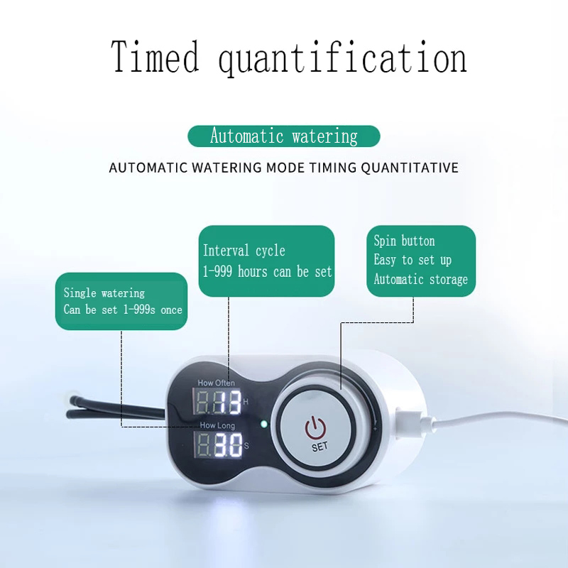 Intelligent Irrigation System: Pump and timer are well combined in the intelligent irrigation system. Save your much time caring for plants. The plants will grow vigorously even when you are traveling.