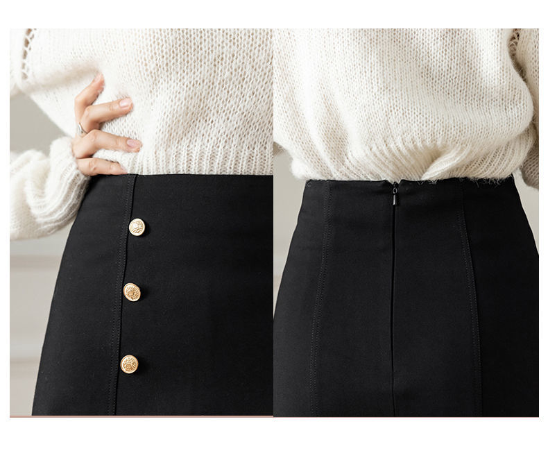 Style Skirts for Woman Button Vintage Solid Work Wear Pencil Skirt Lady Office Business Black Skirt