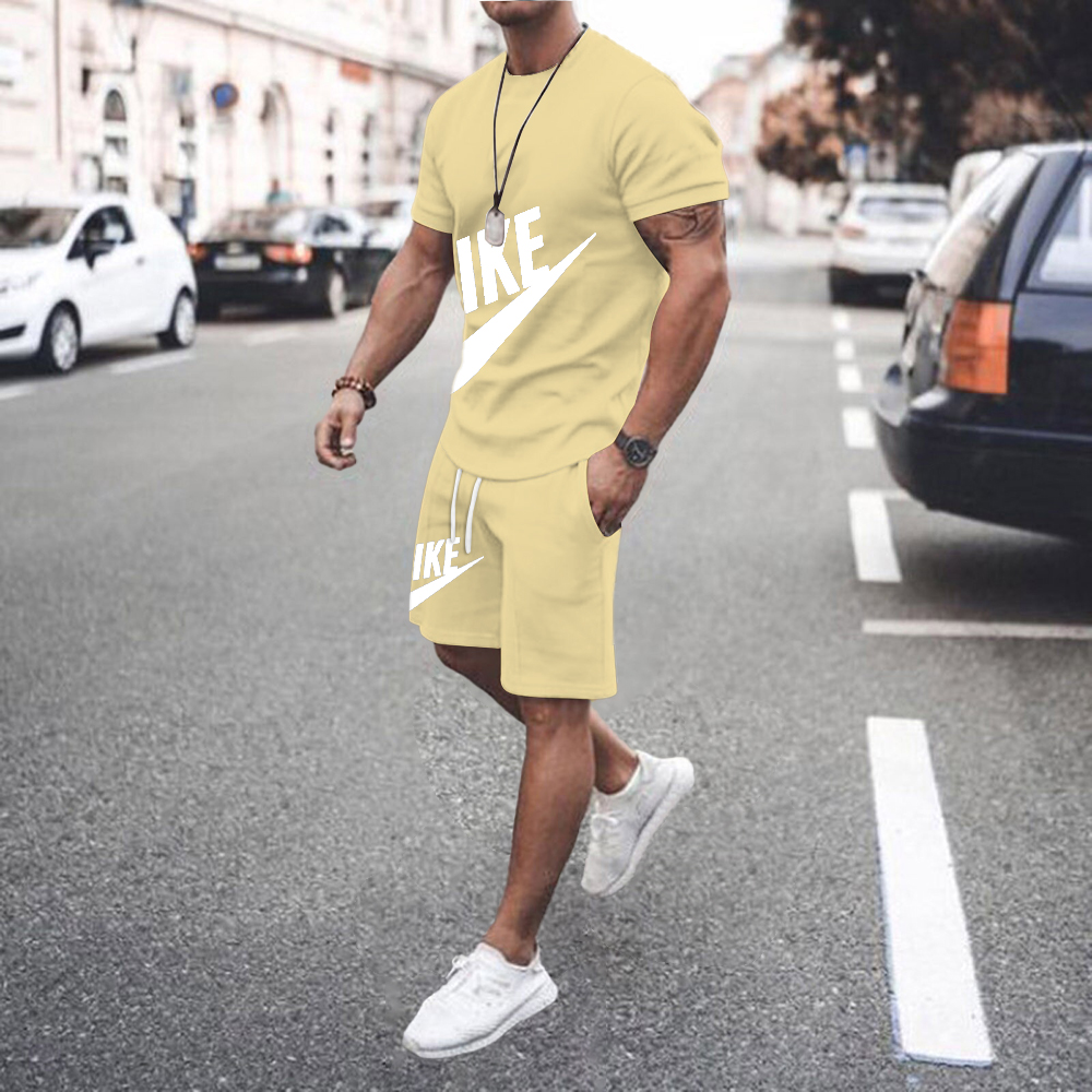 Summer Men's Fitness Men's Casual Sportswear Suit Oversized Sports Suit Short-Sleeved T-Shirt + Shorts 2-Piece Se