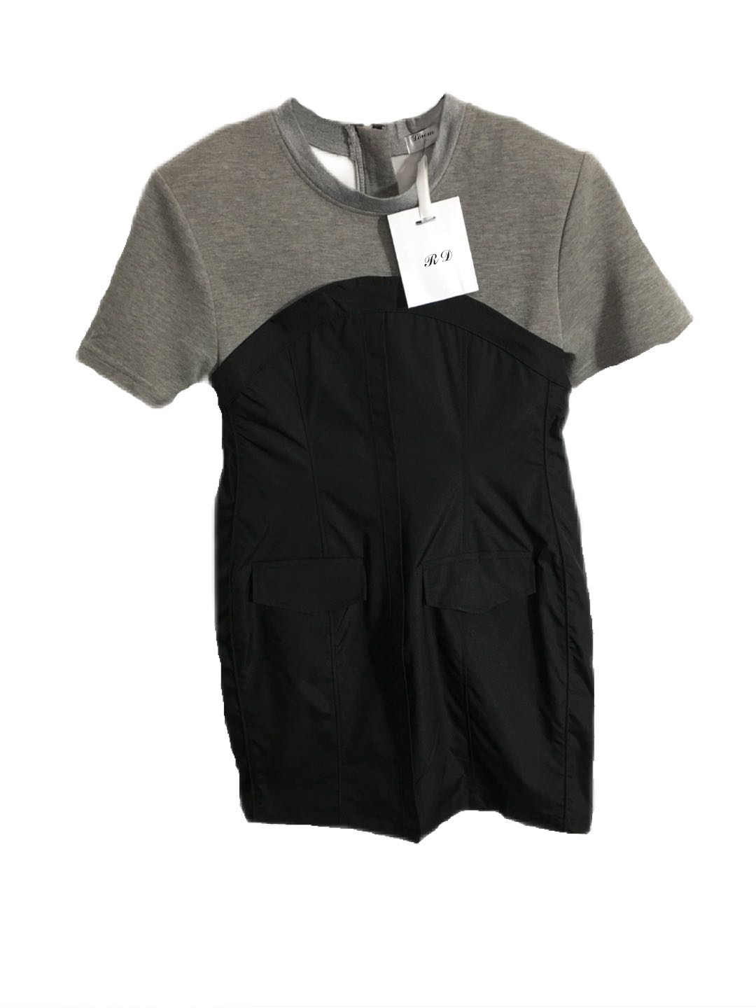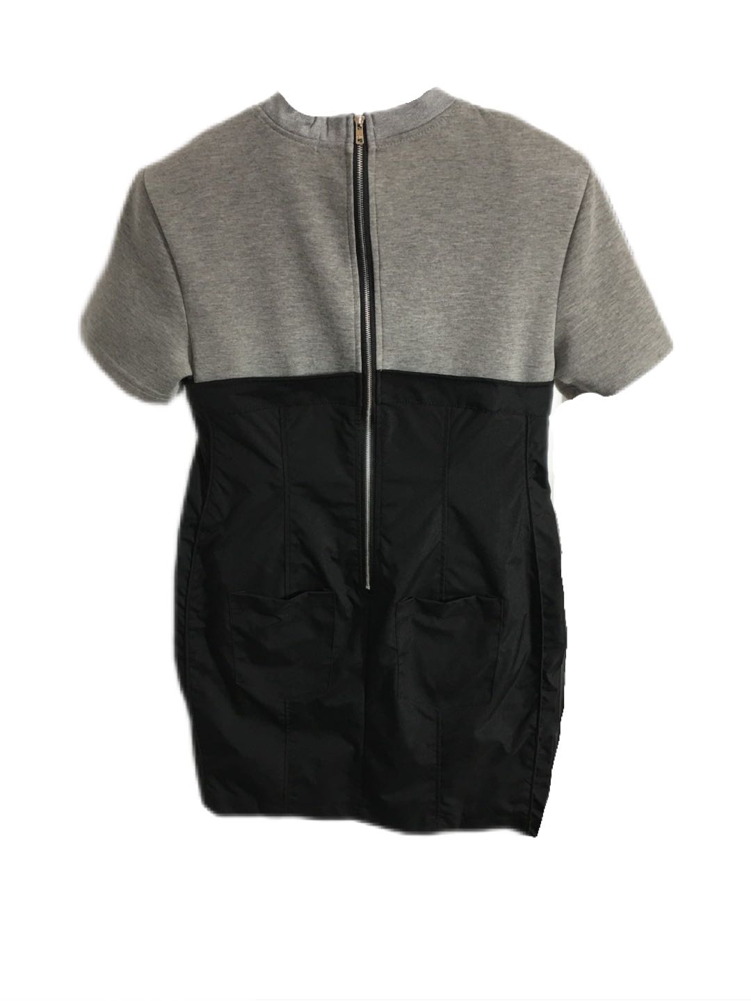 Summer Women's Dress Round Neck Short Sleeve Sweater Top Two-Color Stitched Back Zipper Skirt