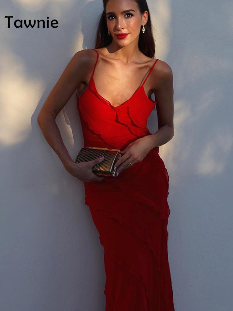 Model Number : Ruffles V Neck Maxi Dresses