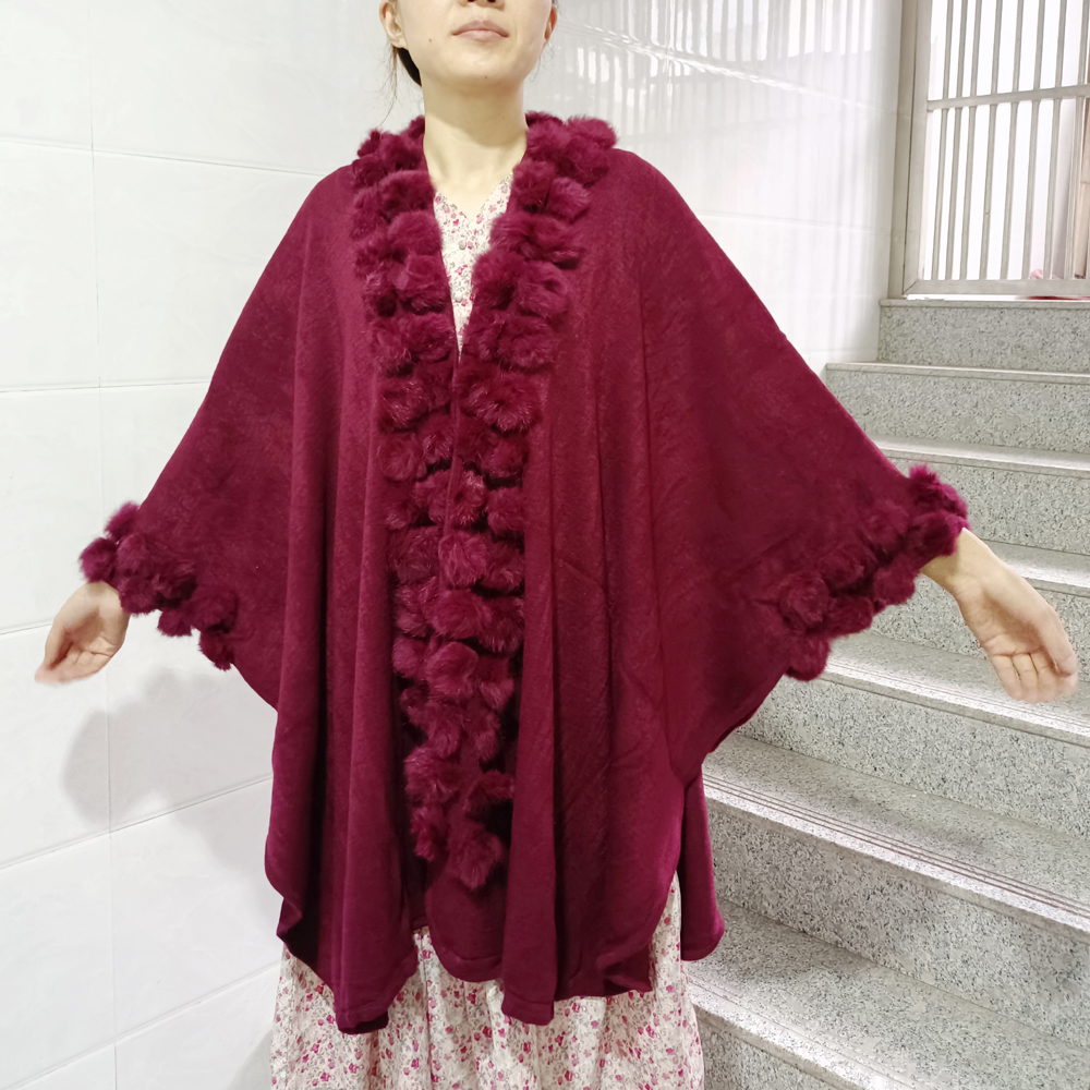 Women Rabbit Fur Poncho Shawl Coat Long