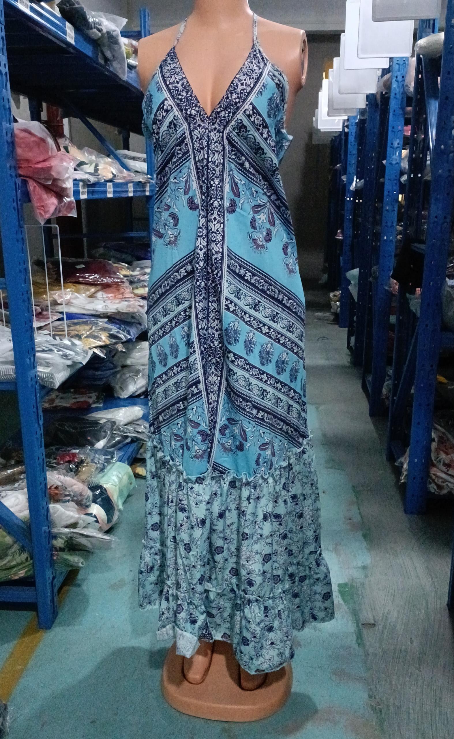 Tribal Print Halter Maxi Dress Women Summer Sexy Backless Vintage Party Club Boho Long Dress