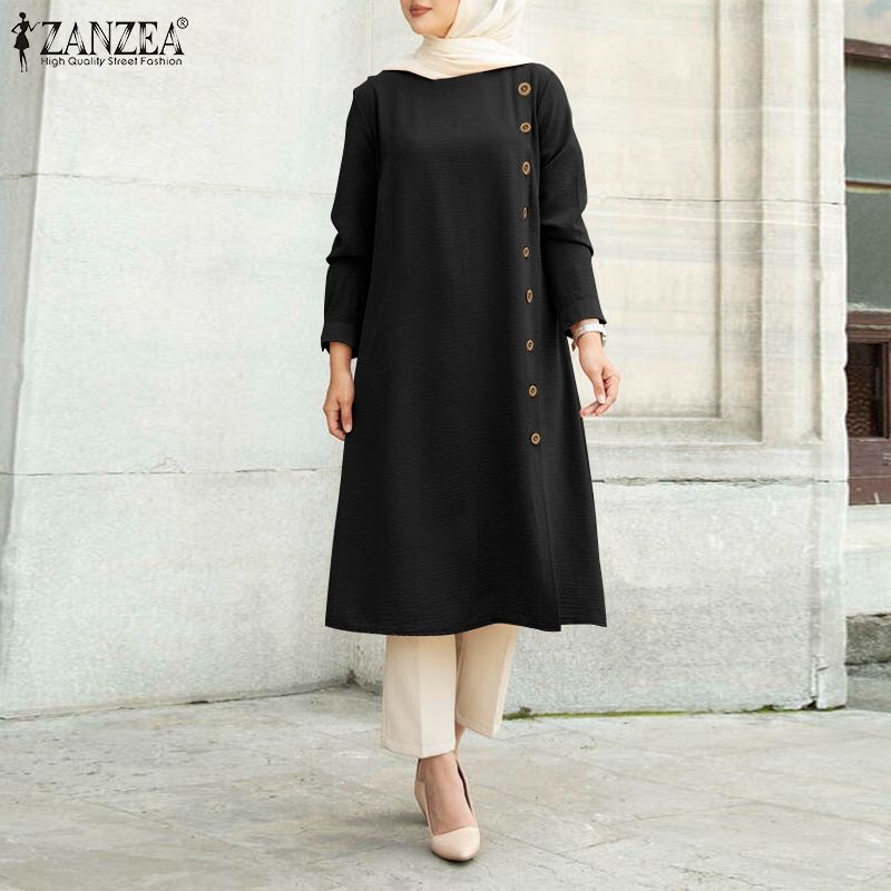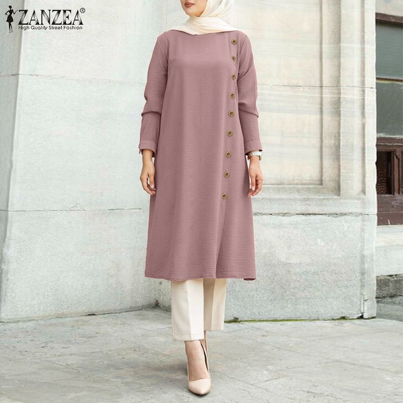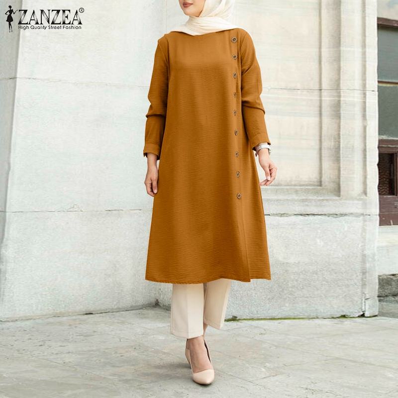 Tunic Blusas Loose Chemise Morocco Turkish Solid Chemise ZANZEA Women Muslim Long Sleeve Blouse Casual Loose Blouse Shirts Tops