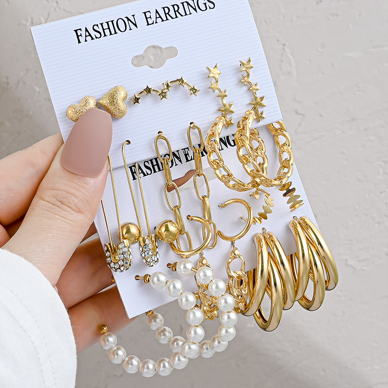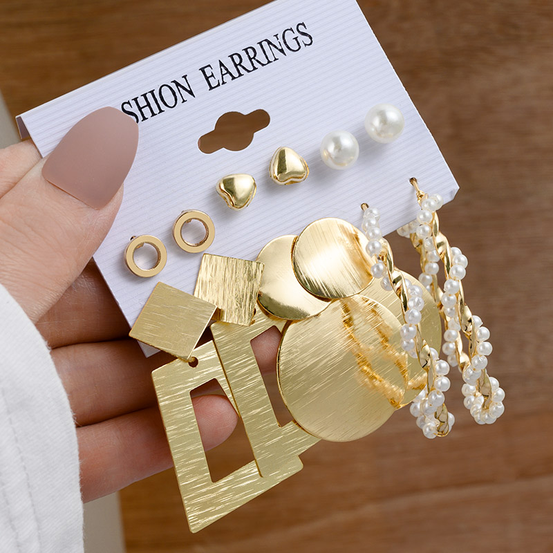 Vintage Gold Geometric Women's Earrings Set Pearl Circle Hoop Earrings For Women Brincos Trend Female Jewelry Gifts