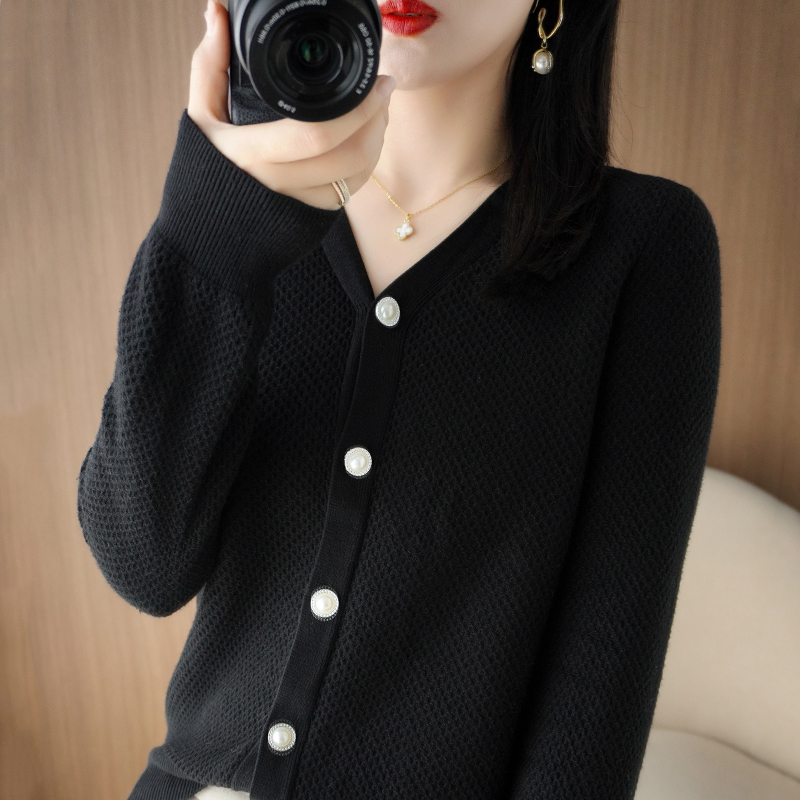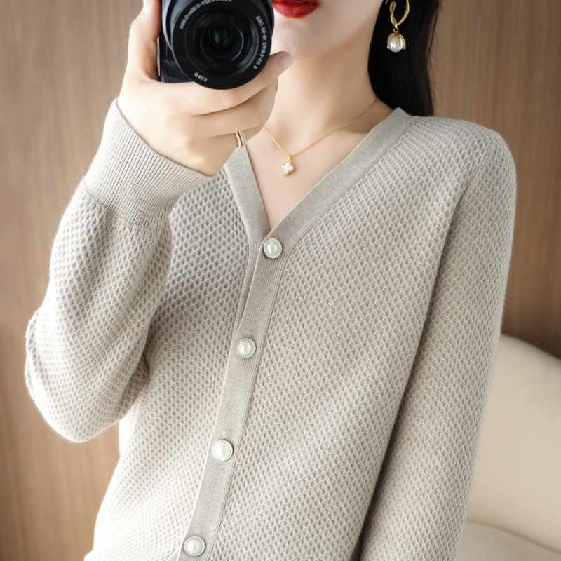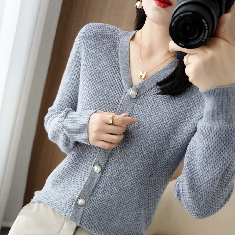 V-neck cashmere cardigan women's sweater in autumn and winter sweater loose thickened solid sweater long sleeved sweater