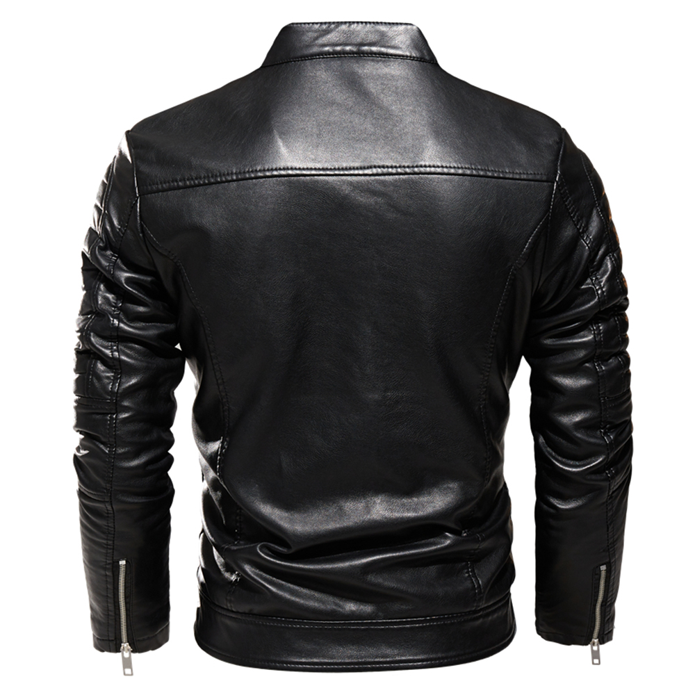 Winter Black Leather Jacket Men Fur Lined Warm Motorcycle Jacket Slim Street BLack Biker Coat Pleated Design Zipper