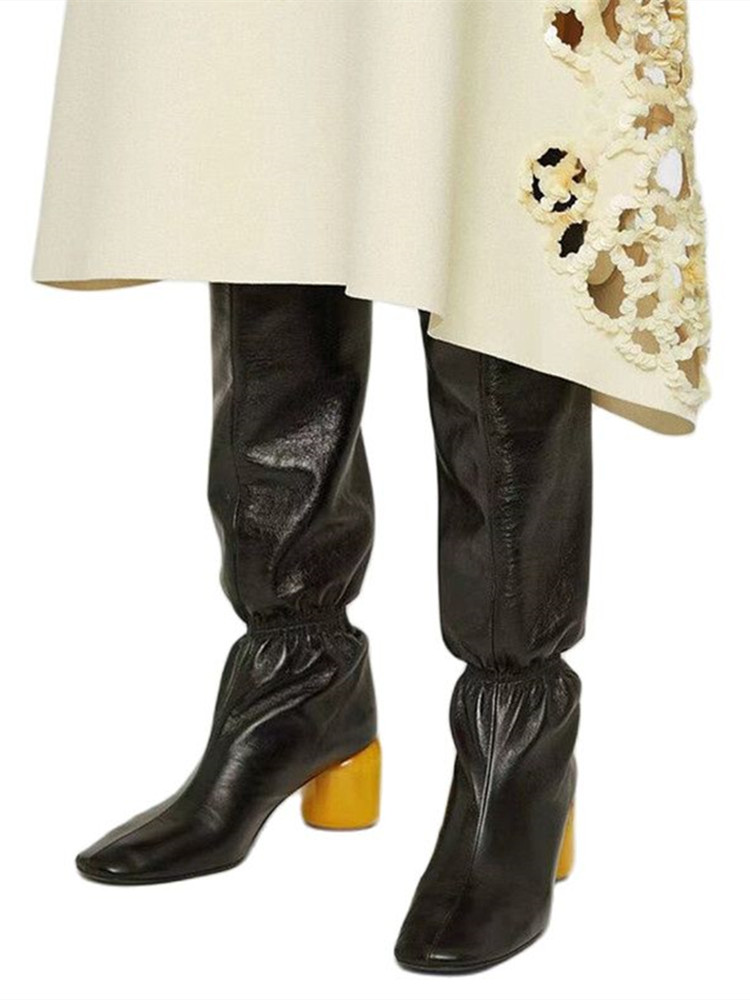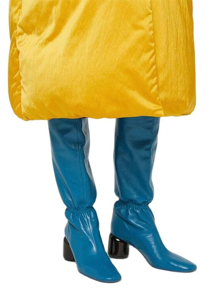 Women Knee Tall Boots Round Heel Banquet Winter Tall Boots High Heels Size 43 Women Shoes