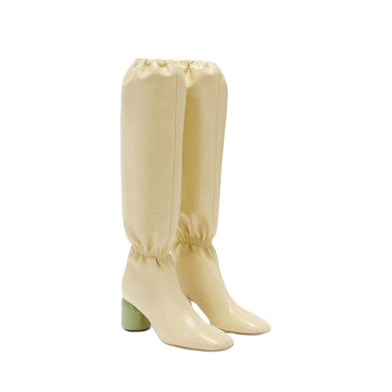 Women Knee Tall Boots Round Heel Banquet Winter Tall Boots High Heels Size 43 Women Shoes