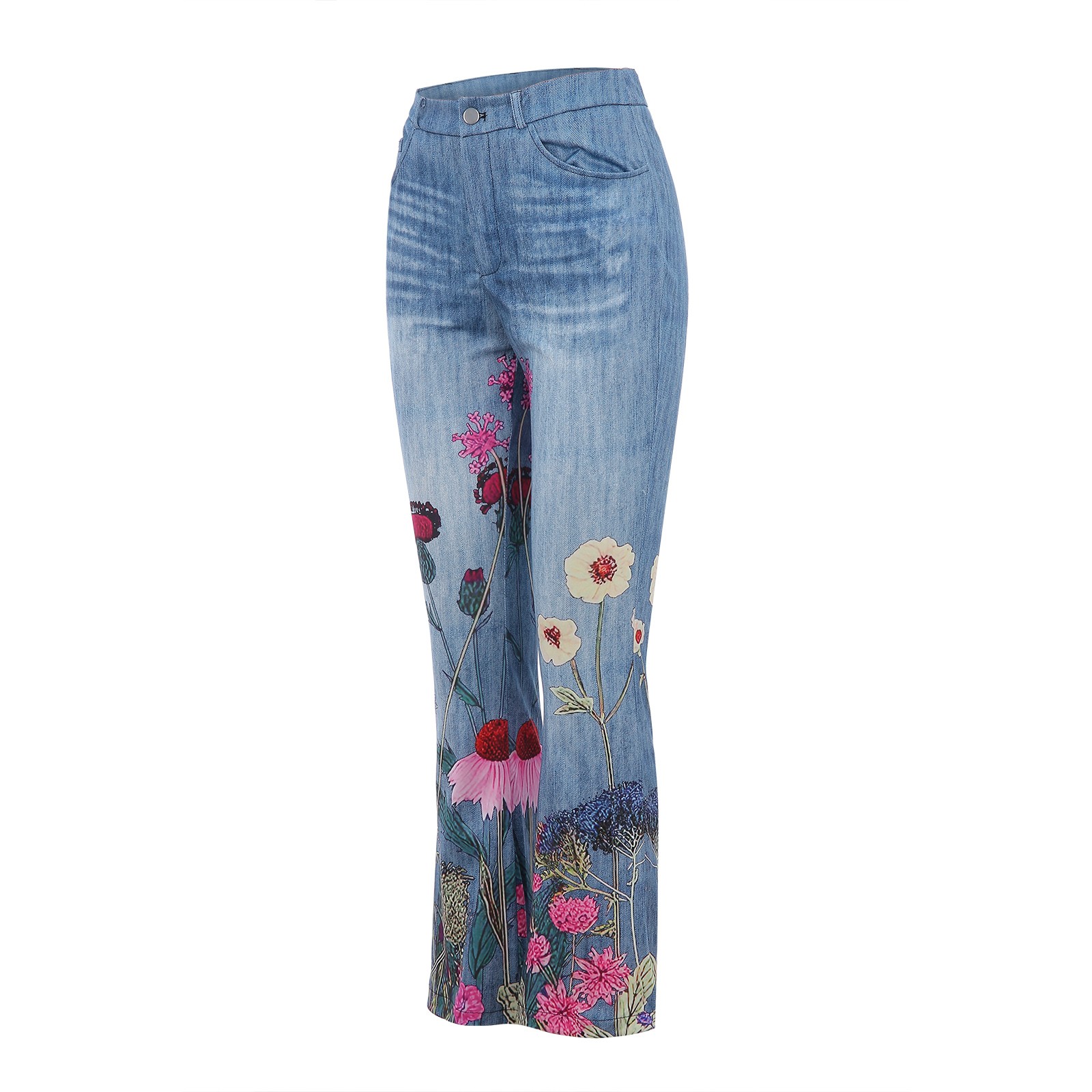 Women Jeans Pants High Waist Flower Printed Denim Women Flare Pants Elastic Female Jeans Pantalon Femme Plus Size Clothing