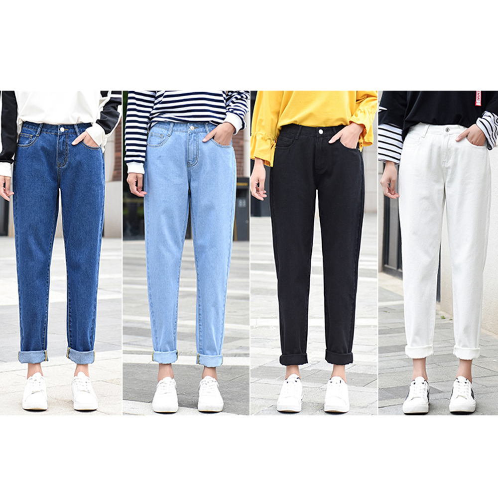 Women Jeans Vintage Straight Mom Jeans Loose Blue Denim Pants Ankle Length Trousers Female Casual Streetwear Harem Pants Jeans