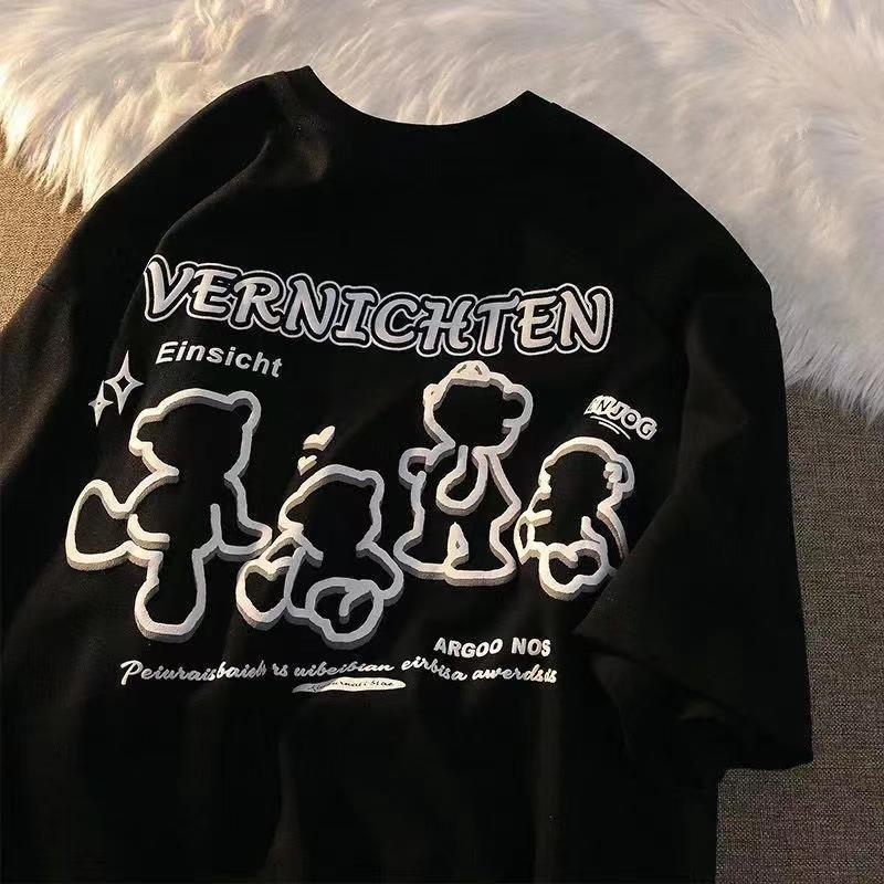 Women Tops Cartoon Bear Print T Short-sleeved Shirt Women's Spring and Summer Loose Men's and Women's Y2K Retro T-shirt Y2k Top