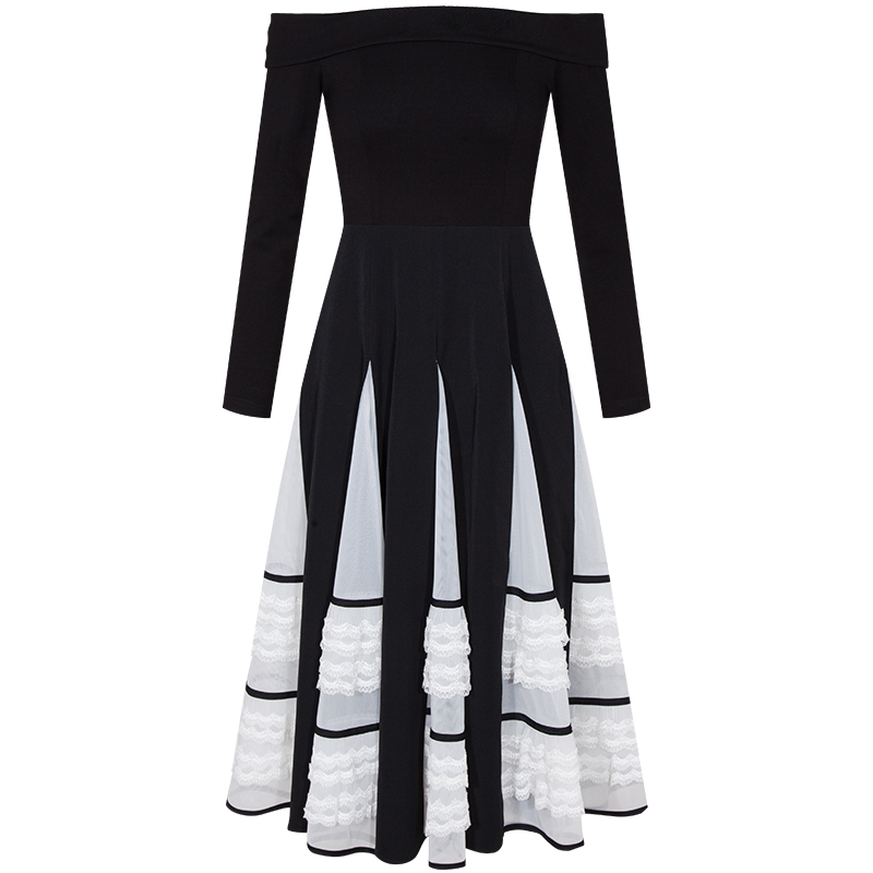 YIGELILA Spring Arrivals Black Dress Slash-neck Long Sleeves Elegant A-line Dress Dinner Party Dress Mid-calf 65241