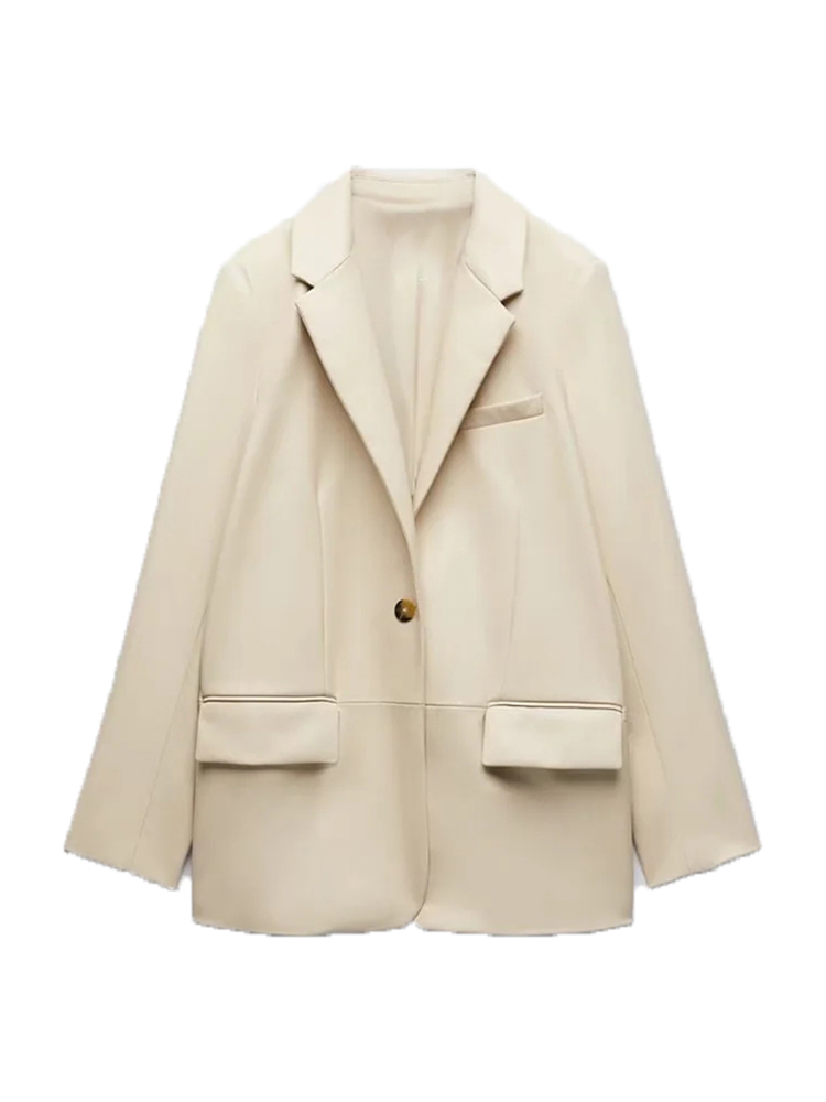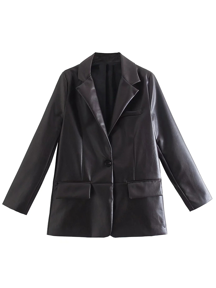 ZACK RAIN Women Faux Leather Black Suit Jacket 2022 Fall/Winter Commuter Ladies Blazer Office Party Loose Female Chic Outwear
