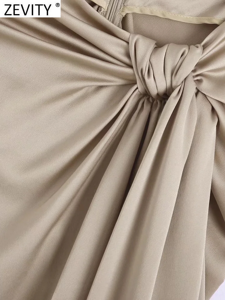 Zevity Women Knotted Design Slim Sarong Midi Skirt Faldas Mujer Female Back Zipper Summer Vestidos QUN900