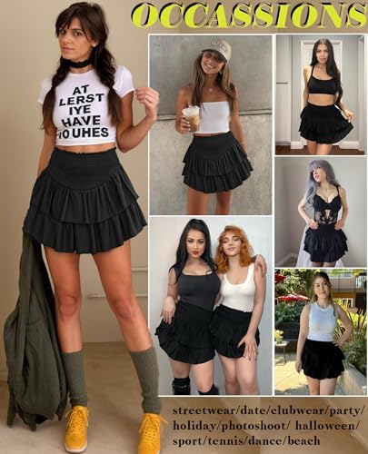 Avidlove Women's High Waist Ruffle Flowy Mini Skirts Stretchy Lined Layered Pleated Casual Beach Short Skirt