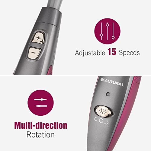 It has a variety of attachments that change in and out with ease! There is a generous amount of pads for smoothing rough nail edges and removing stubborn polish! The size and weight of it is great for seniors who may have grip issues! The drill bits are durable andefficient! It is removes polish quickly and it will save you the added fee for polish removal at your local nail salon, which means it pays for itself overtime!! Great purchase!!