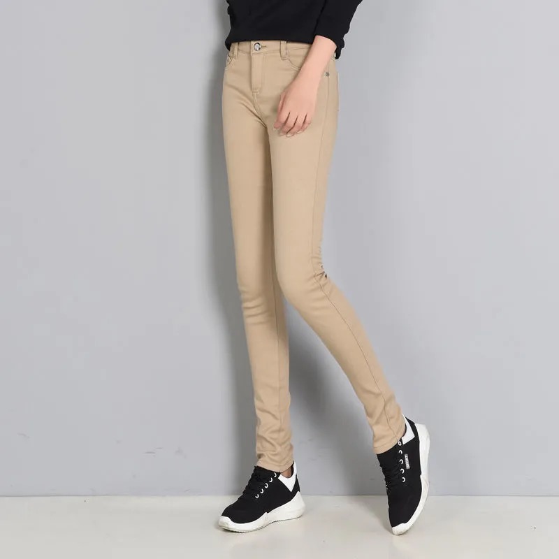 Woman slim solid casaul Pants : casual Women skinny Jeans